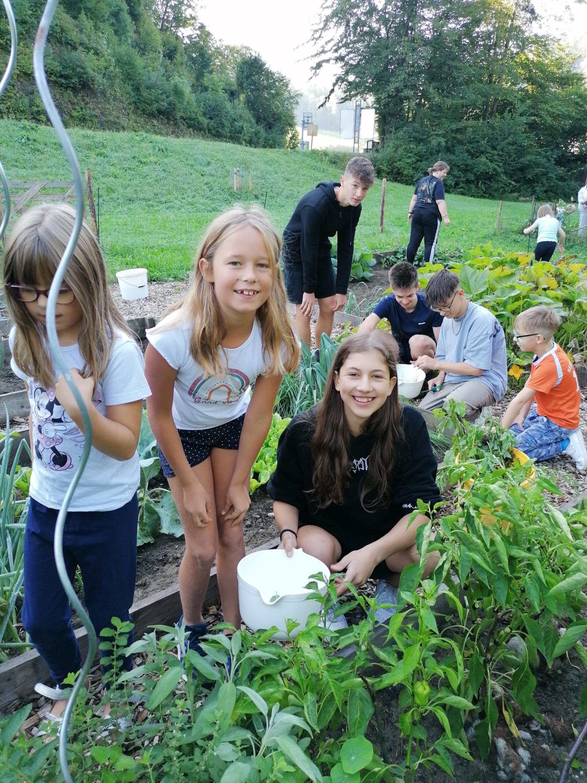 Die Ackerpartner der 2. Volksschule und 4. Mittelschule brachten die erste gemeinsame Ernte unseres Schulackers ein. Es wurden Paradeiser, Paprika, Zucchini, Zwiebel, Lauch, Karotten, Gurken, Erdäpfel, Mangold, Salat, Schnittlauch und diverse Kräuter geerntet. Weiters wurden Wintersalate angebaut, weitere Gemüsepflanzen gesetzt, Beete gelockert und von Unkraut befreit sowie gegossen. Im Blumenbeet wurde gegraben und Blumenzwiebel eingelegt. Der Spaßfaktor bei der gemeinsamen Arbeit war garantiert.