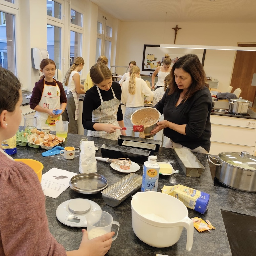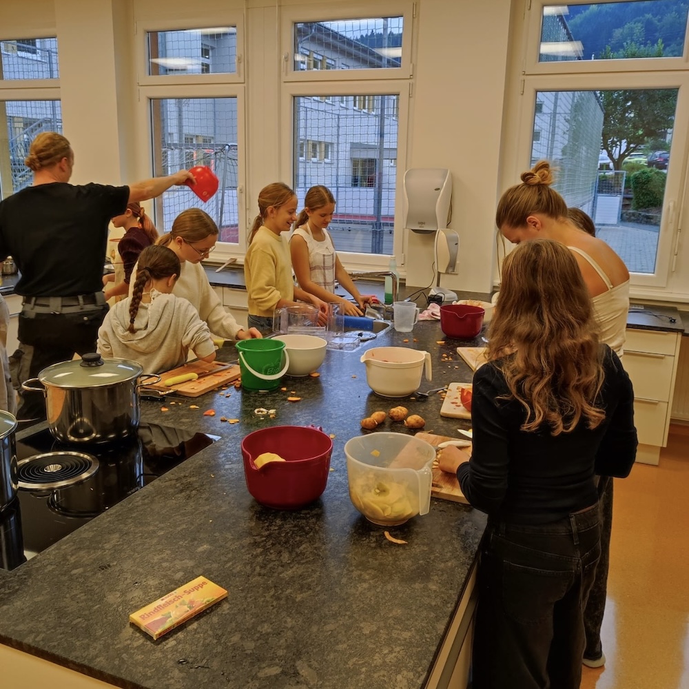 Zum Abschluss durften sich alle über eine köstliche Stärkung freuen: selbstgemachte Kürbissuppe und Kuchen, zubereitet von Frau Hofmacher und Frau Sonnleitner gemeinsam mit der 3. Klasse.