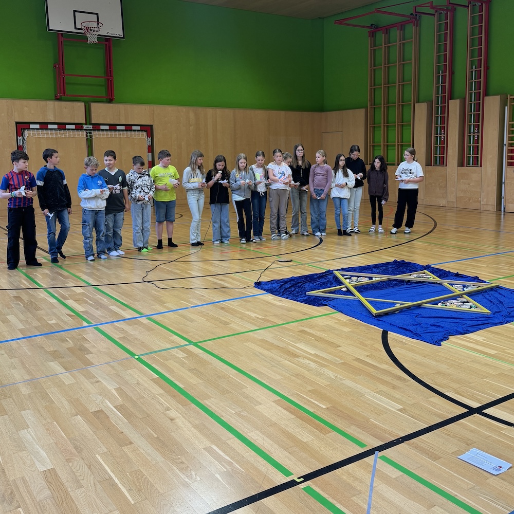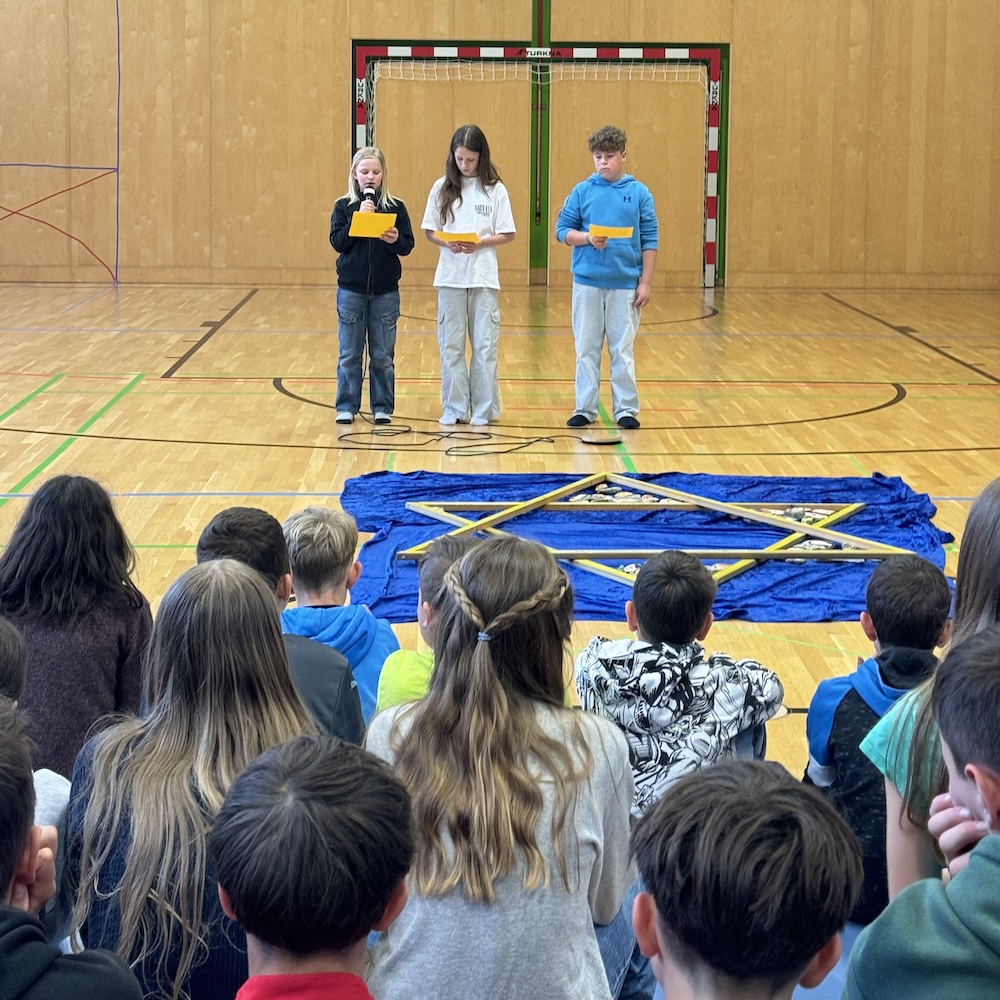 Den Abschluss der Woche bildete heute das schulinterne Gedenken Begehen im Turnsaal. Die gesamte Schulgemeinde gedachte gemeinsam mit Frau und Herrn Naske den Opfern der Schliefau. Unsere SchülerInnen hatten zahlreiche Beiträge vorbereitet, darunter Friedenstauben mit Botschaften, Zeitzeugenberichte und Berichte über Widerstandsbewegungen, sowie Gebete und musikalische Beiträge. Die SchülerInnen hatten auch jüdisches Brot (Challah) sowie Glückskekse mit friedlichen Botschaften gebacken, diese wurden am Ende der Veranstaltung verzehrt.